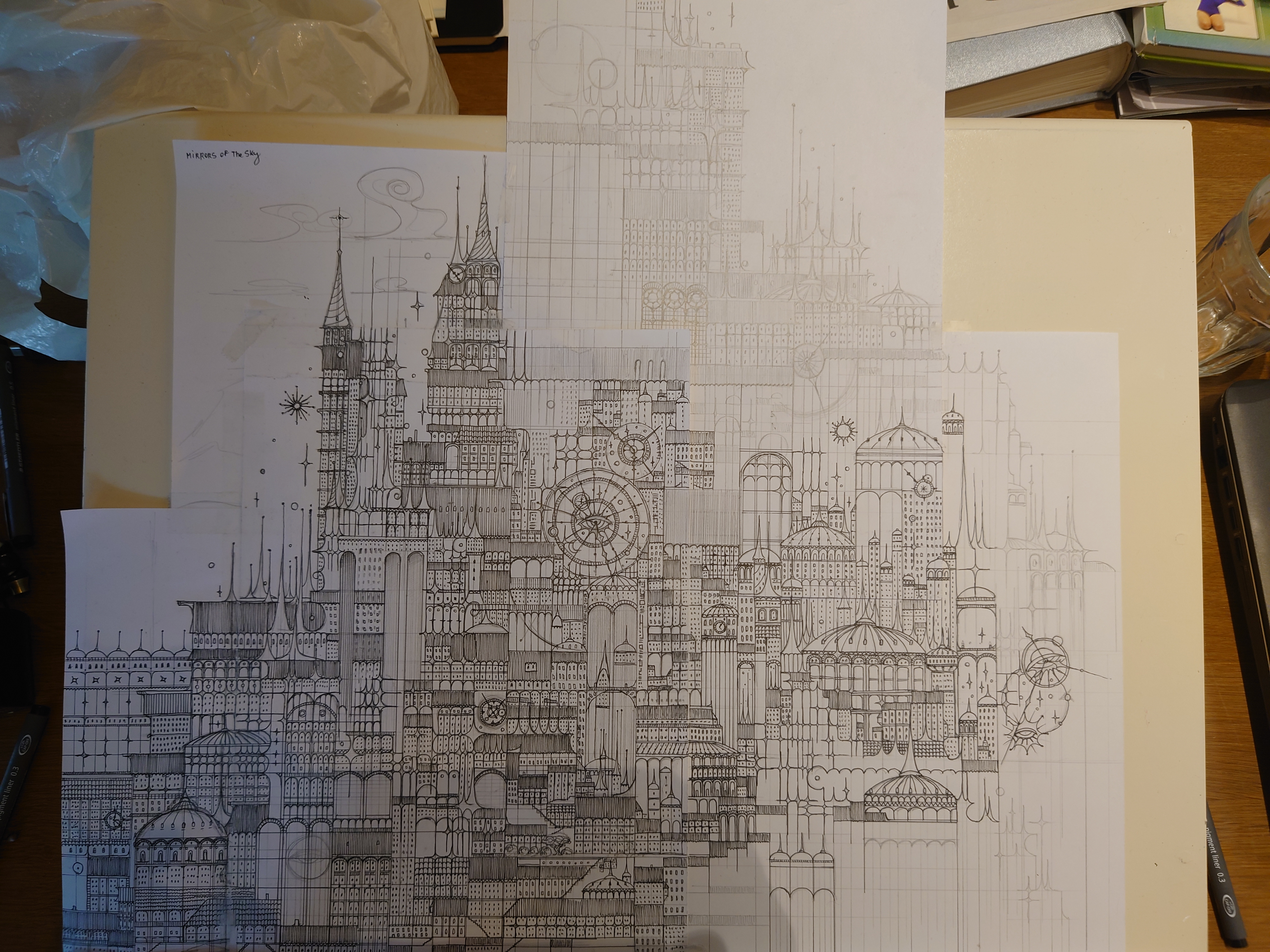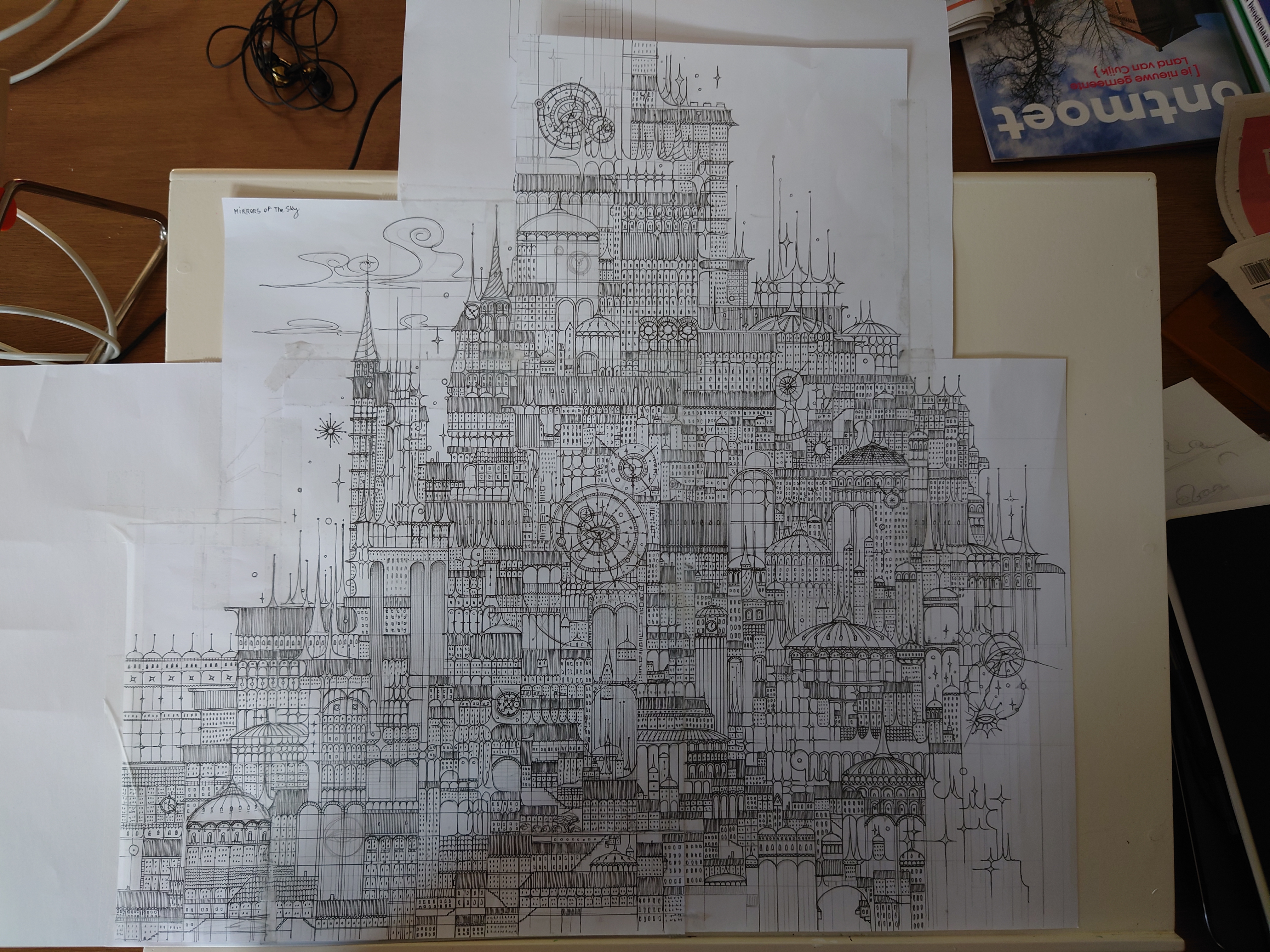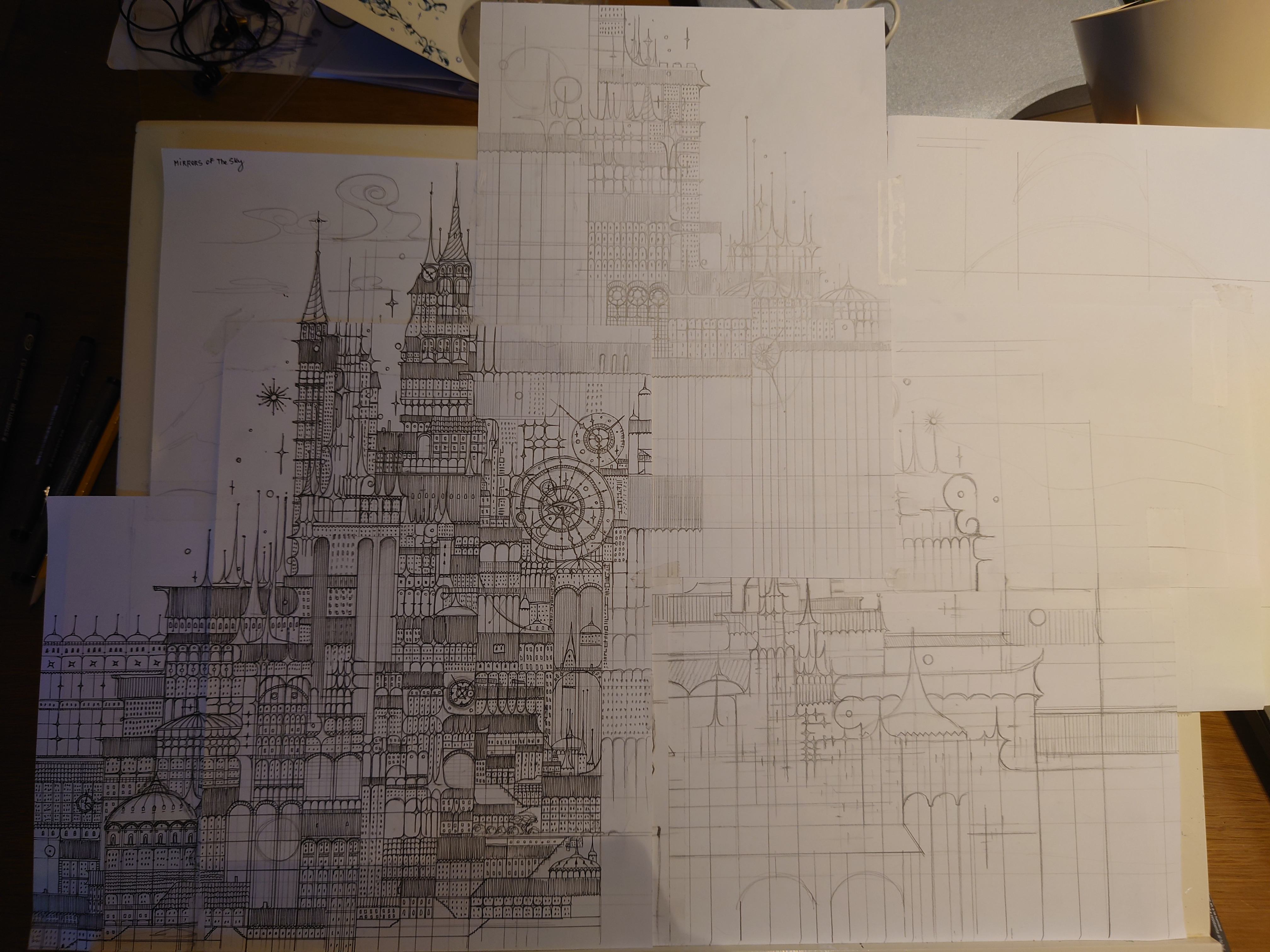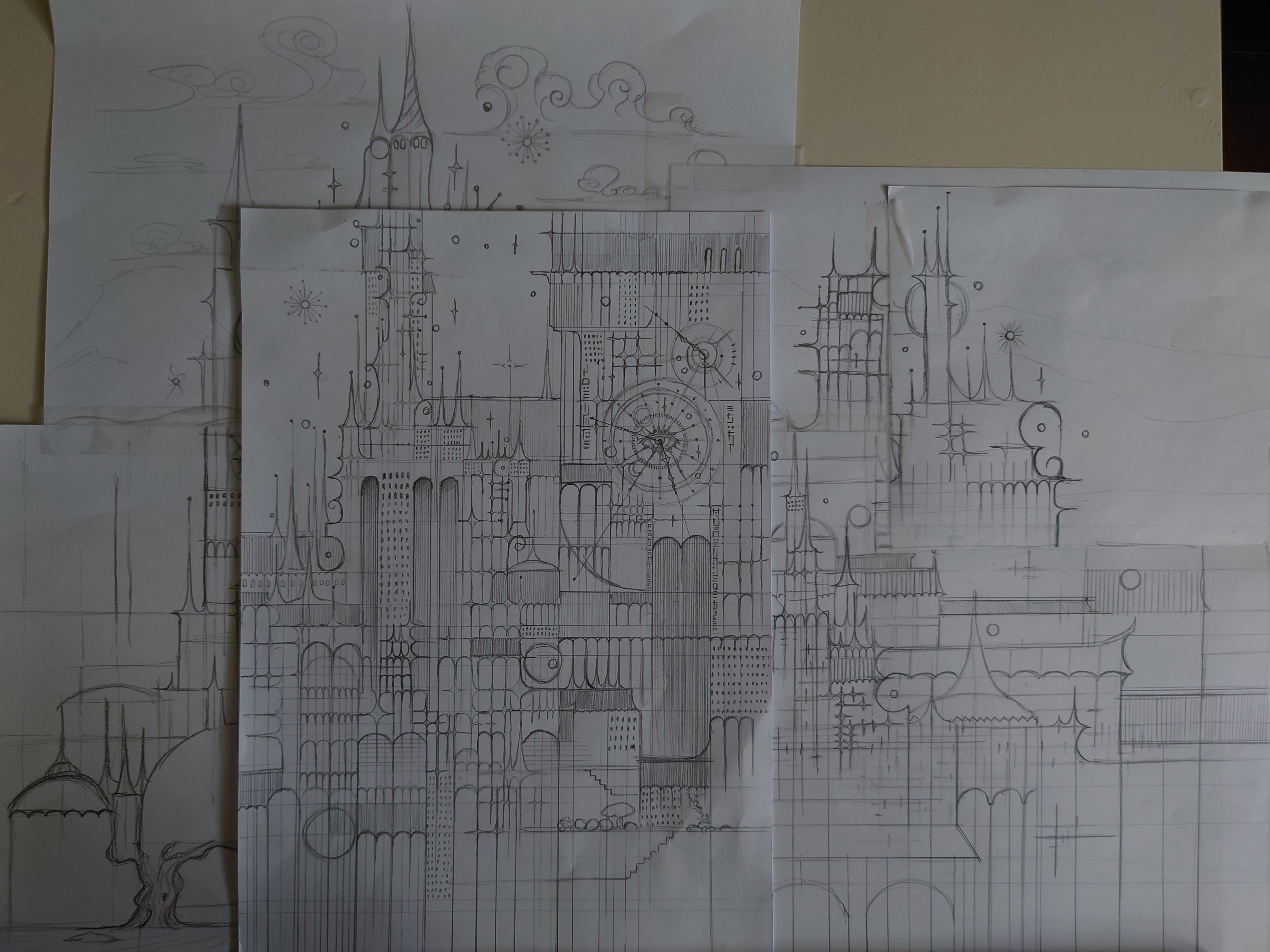 Every sheet of paper became another piece. Purely intuitive. I didn’t plan to create a castle, I just drew because I felt like I had to. It gave me something to start from, something simple I could do without too much energy.