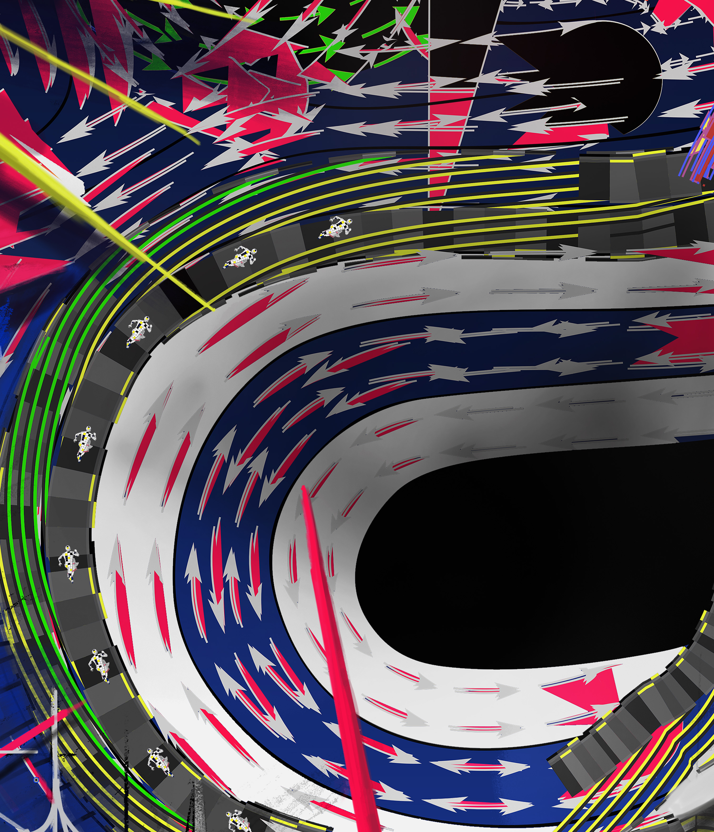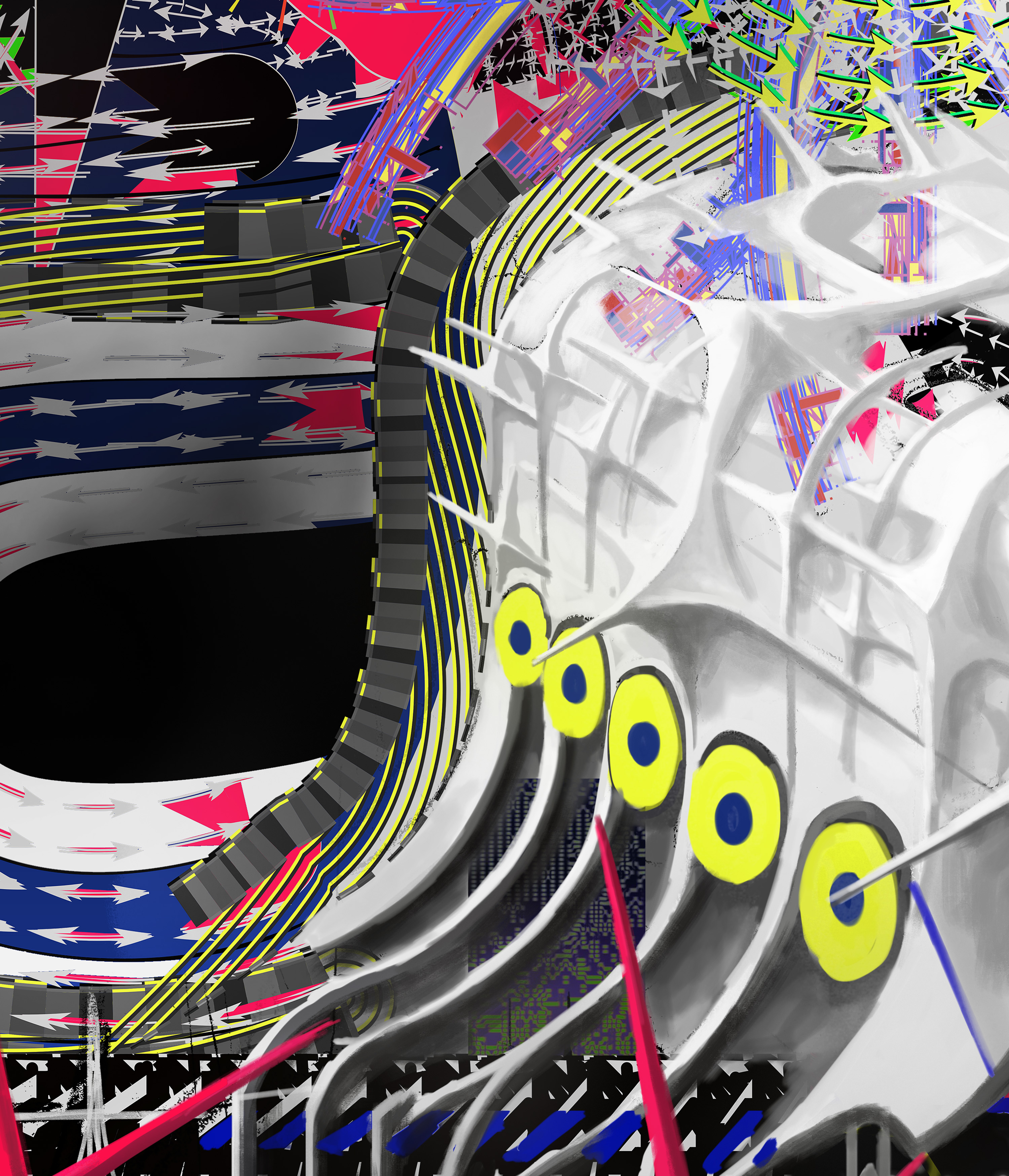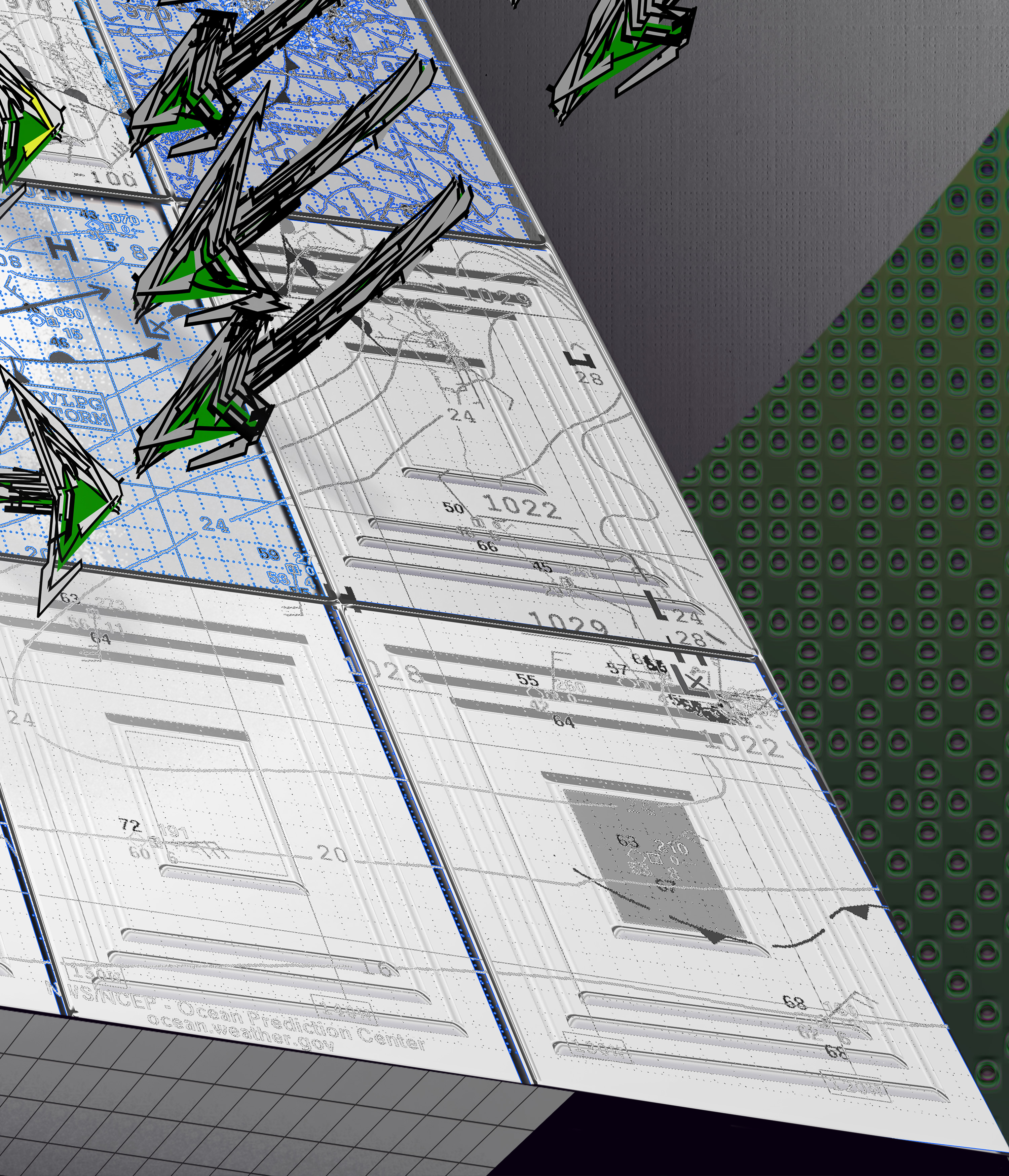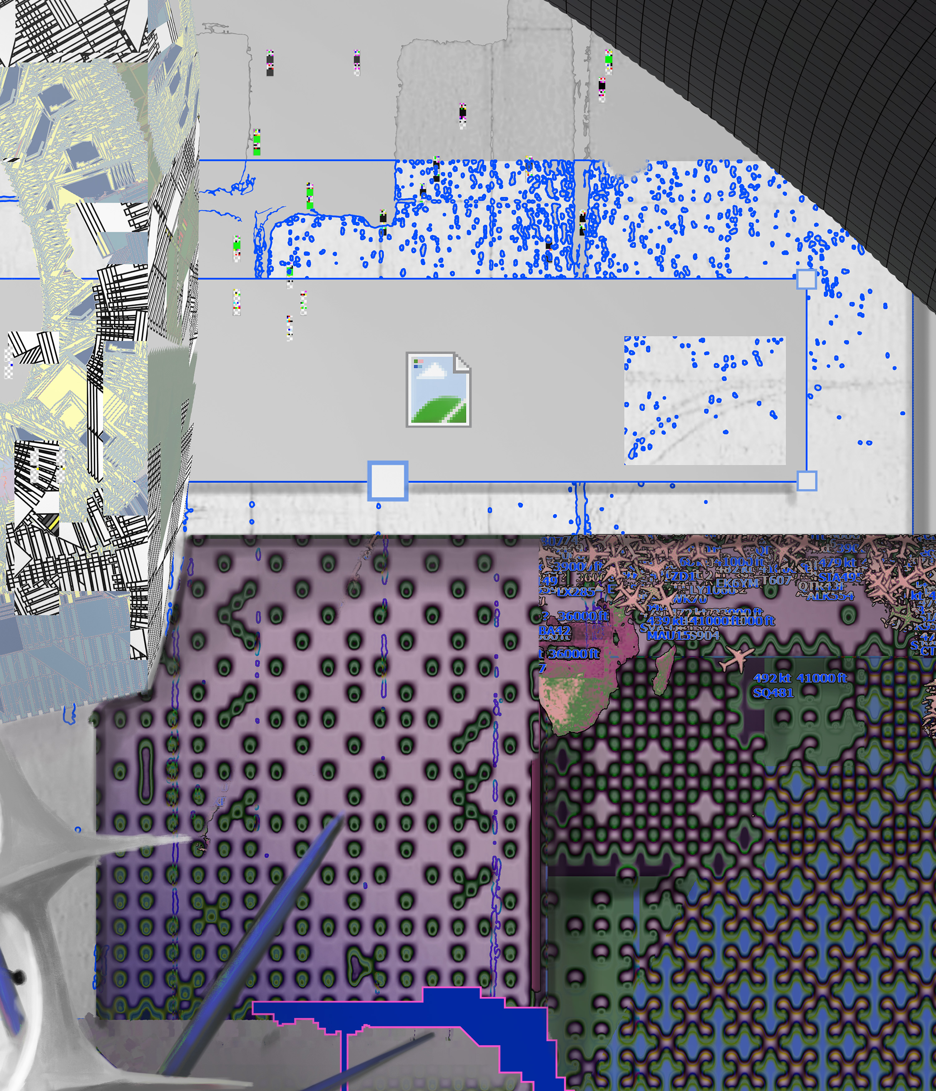 In this collaboration, these two historical trajectories converge. By working across geographical and cultural boundaries, Jesperish and Movsum mirror the international networks that once connected artists across Europe. Their digital environment—composed of grids, swarming vectors, and organic structures—translates the utopian ambitions of modernism into a contemporary visual language shaped by data flows, algorithmic systems, and online collaboration.