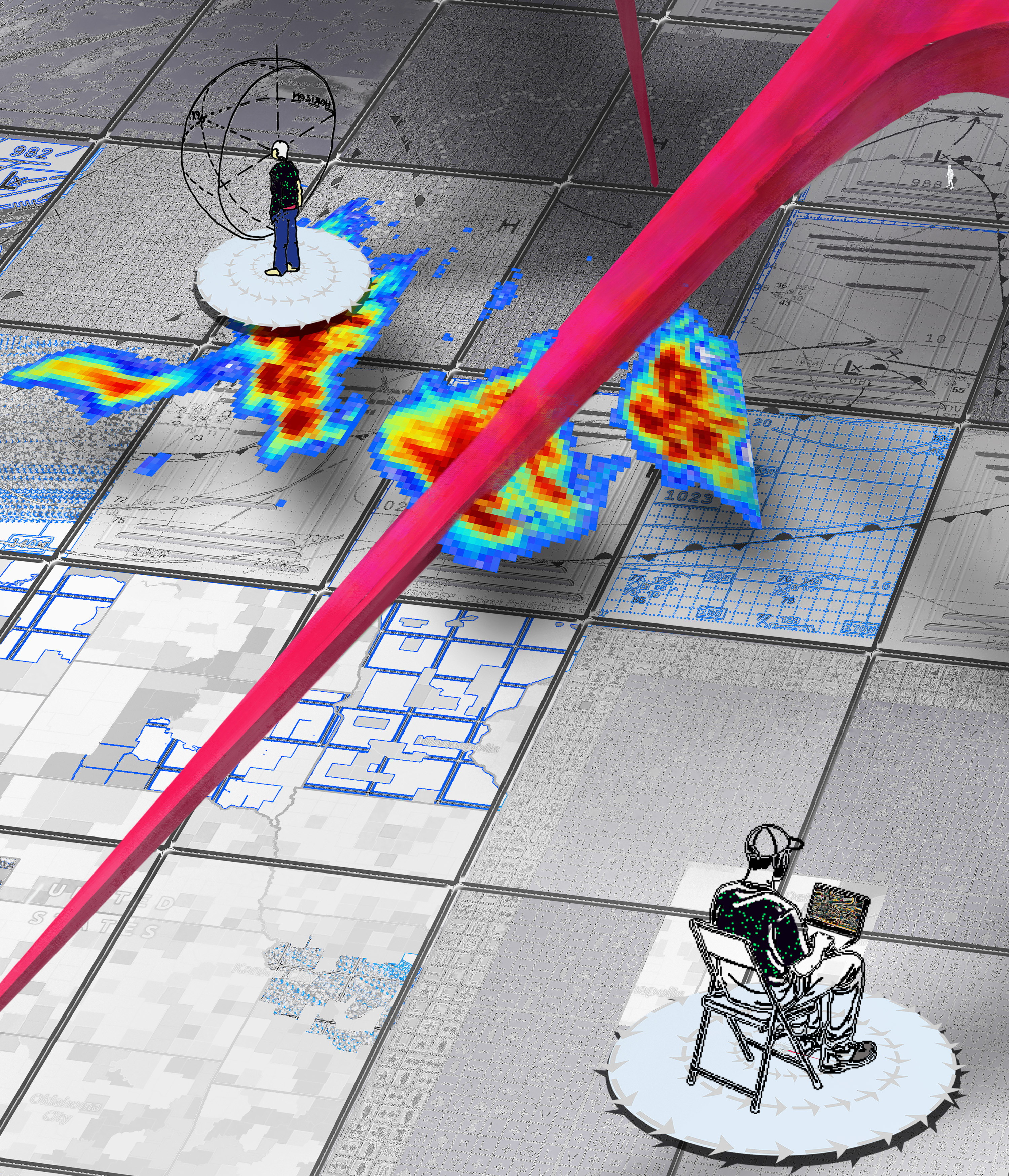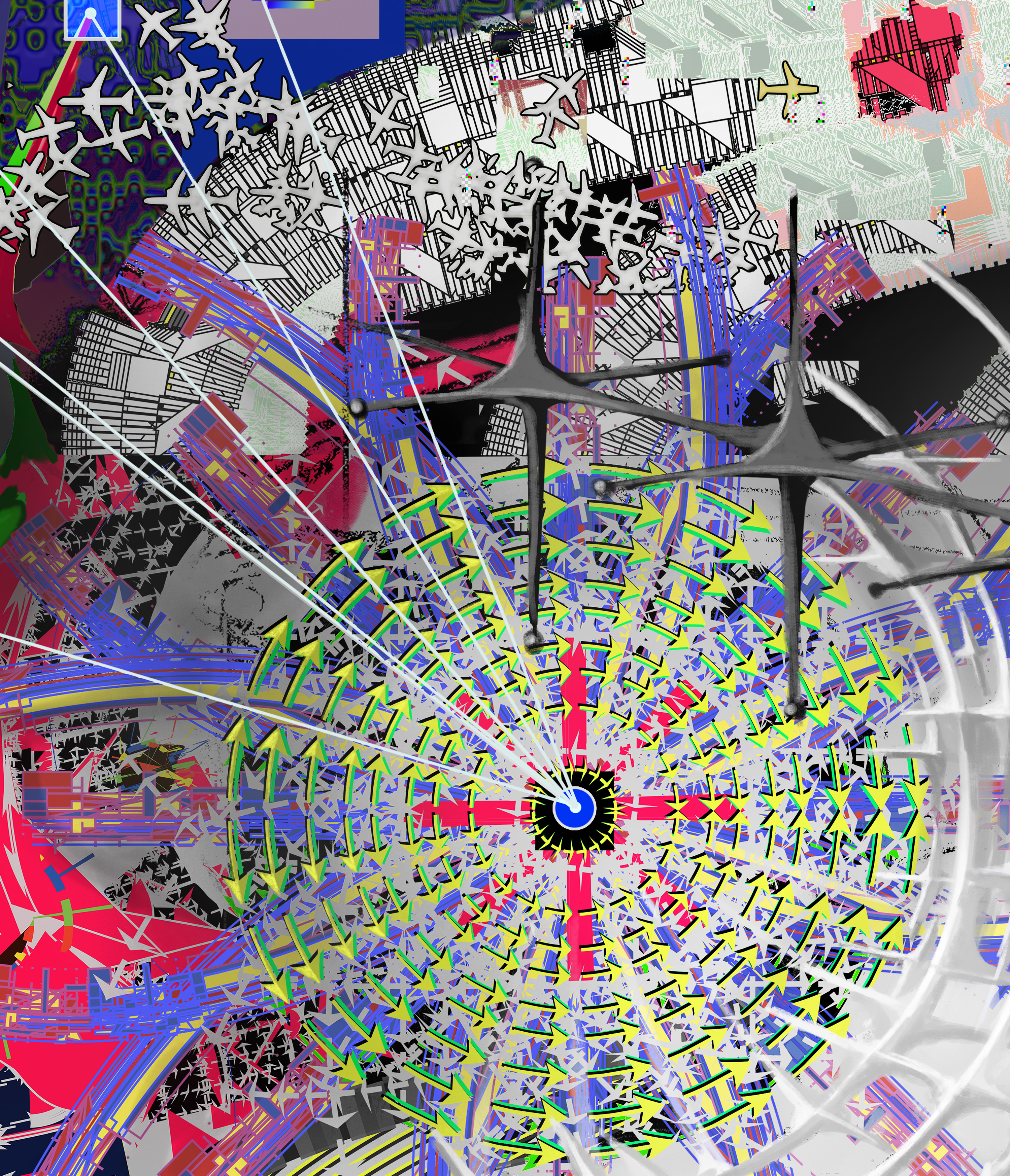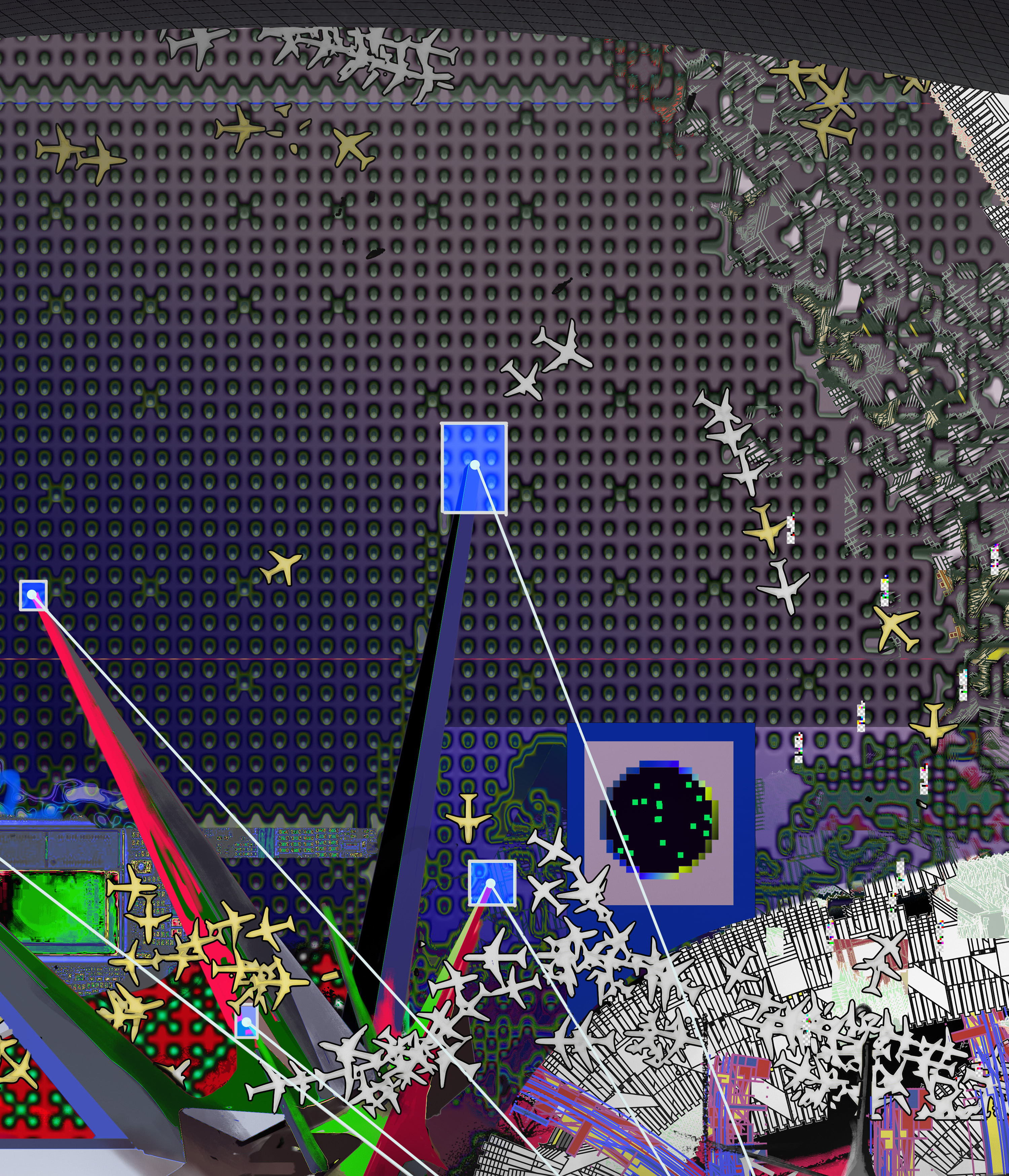 This artwork examines the multiple dimensions within which contemporary individuals exist. In daily life, we perceive the world through many digital interfaces, screens, and visual systems that shape how space appears to us, each offering its own perspective. The viewer is immersed in a state of visual and informational saturation, where multiple images and perspectives overlap and coexist.